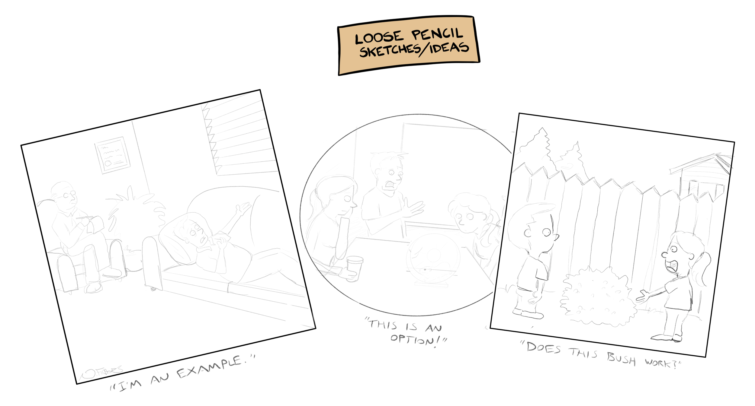 2. I’ll send you several rough pencil sketches of the gag cartoon.