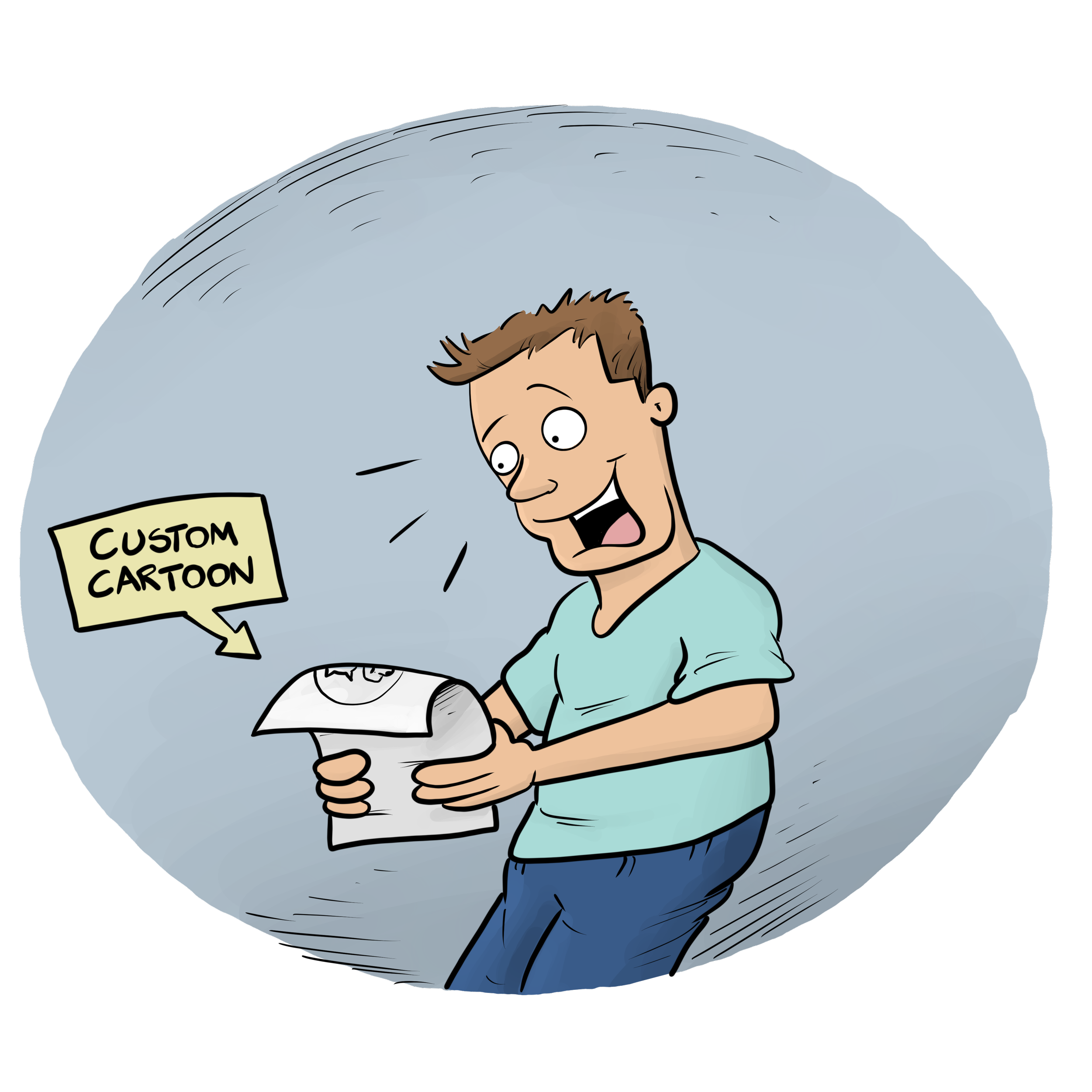 Get a unique, one-of-a-kind custom cartoon that's ready for use in print or online. 100% created by nationally syndicated cartoonist Nate Fakes. A perfect item for marketing, a gift, or the office.